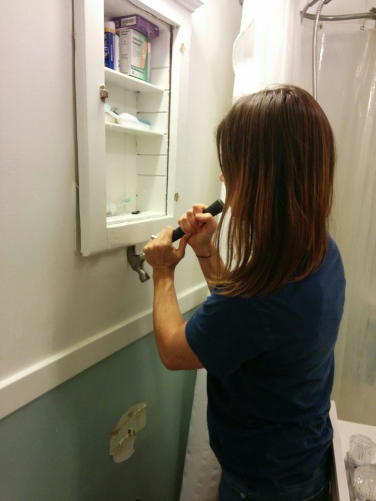While Tim was in Germany for work, BFF Camilla came to town to whip my house into shape. Despite my hesitations, she pulled this mirror out of my wall.