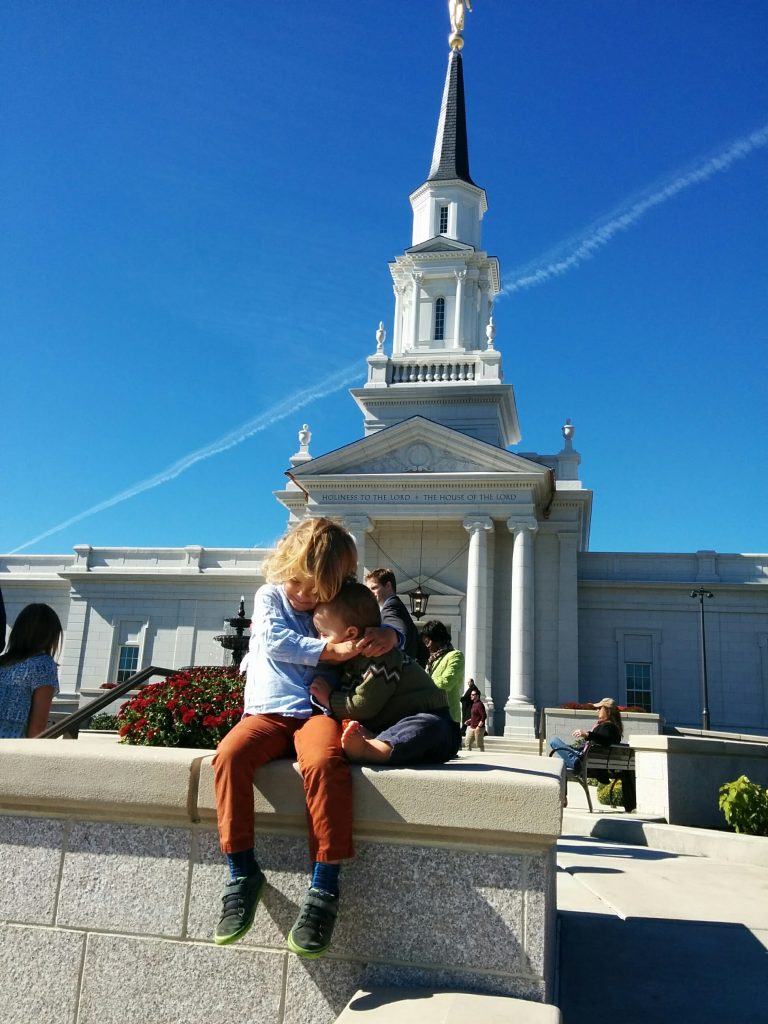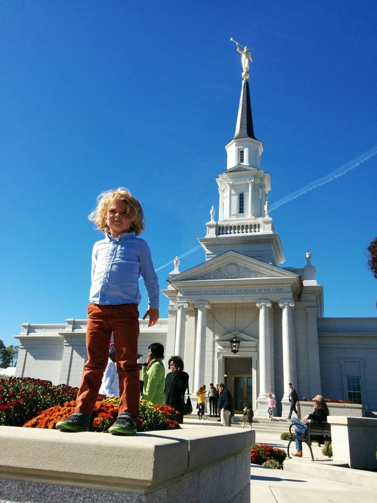 We ventured to Hartford for the open house of the new LDS temple. Shaw got stuck under a bench.