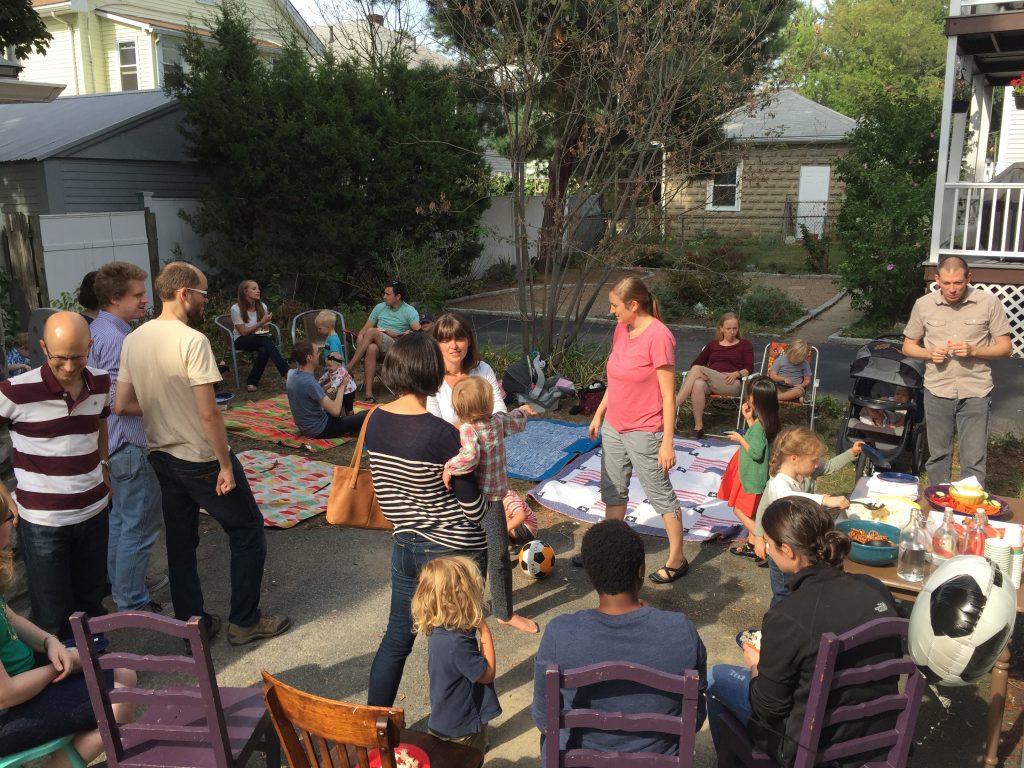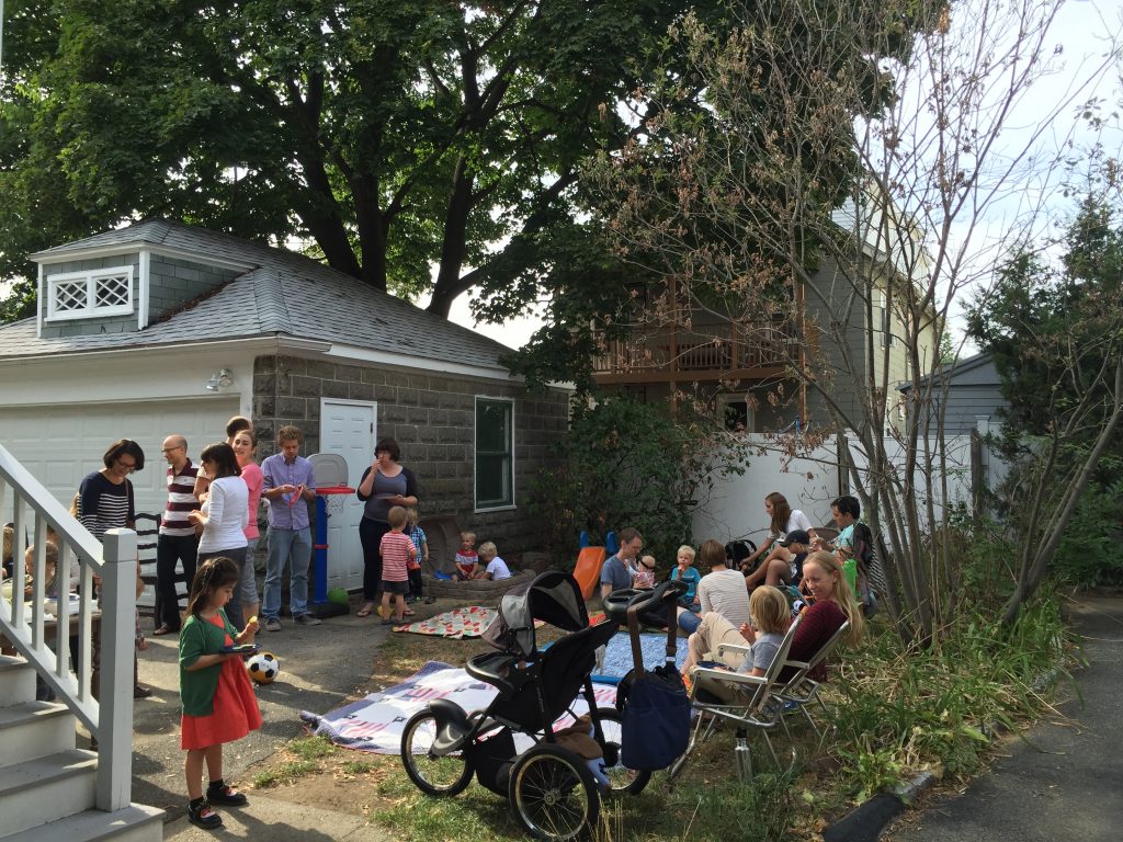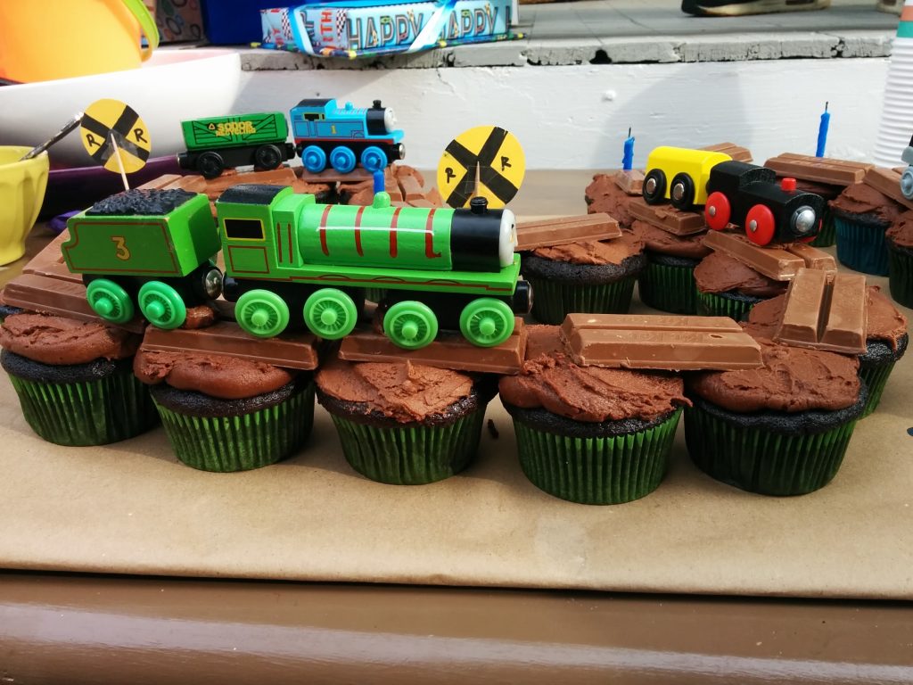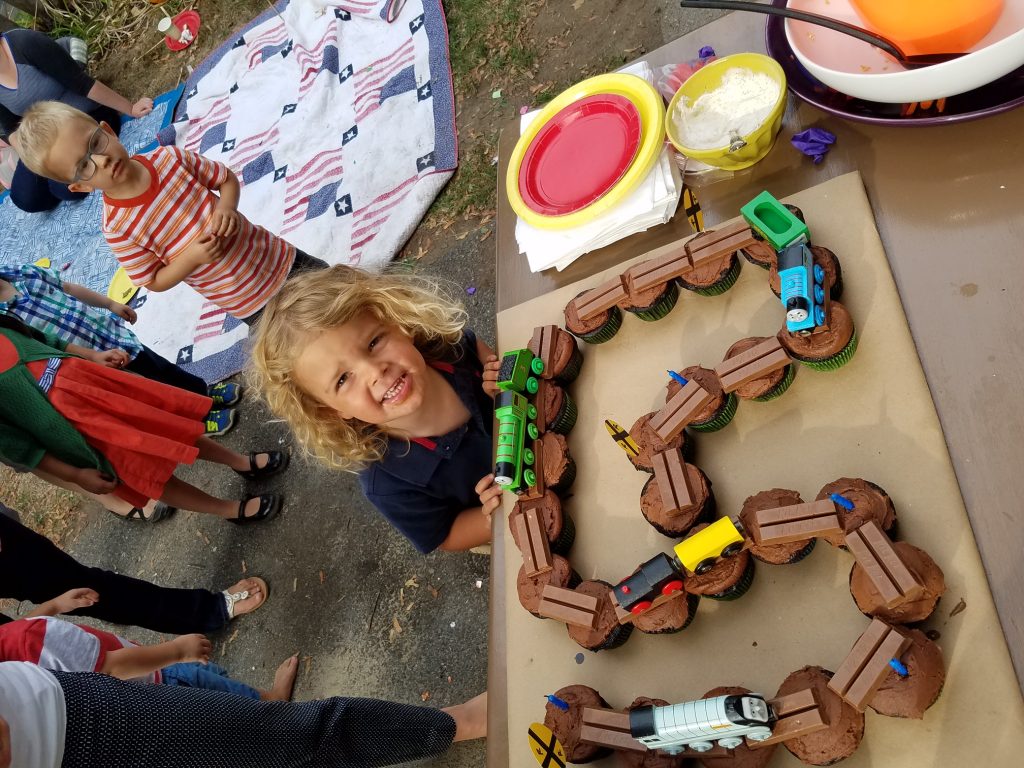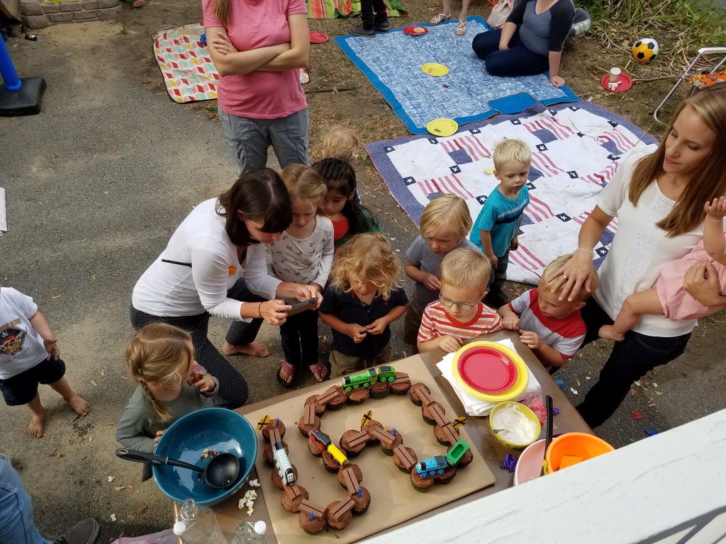 We decided to throw a very casual birthday party with friends in our new backyard. Chocolate cupcakes with chocolate frosting made a very easy birthday cake!