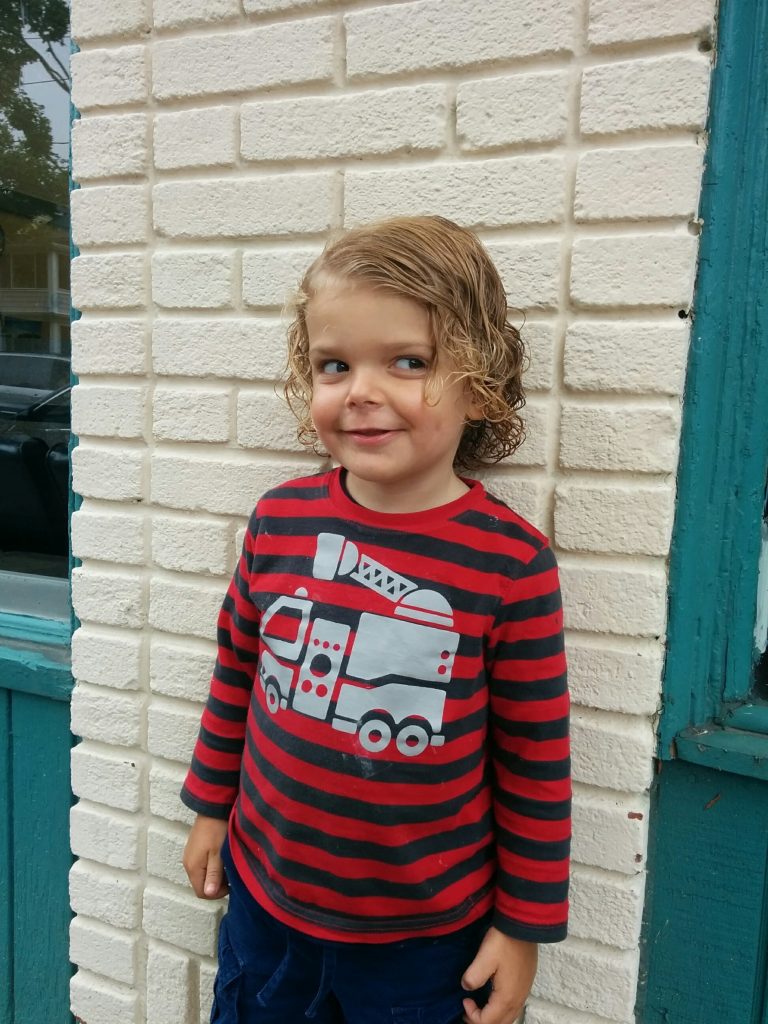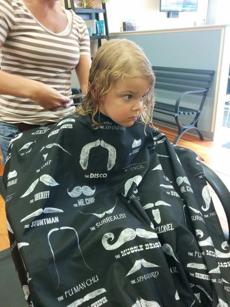Soren paid his first visit to a real hair salon. Second haircut ever, and very somber!