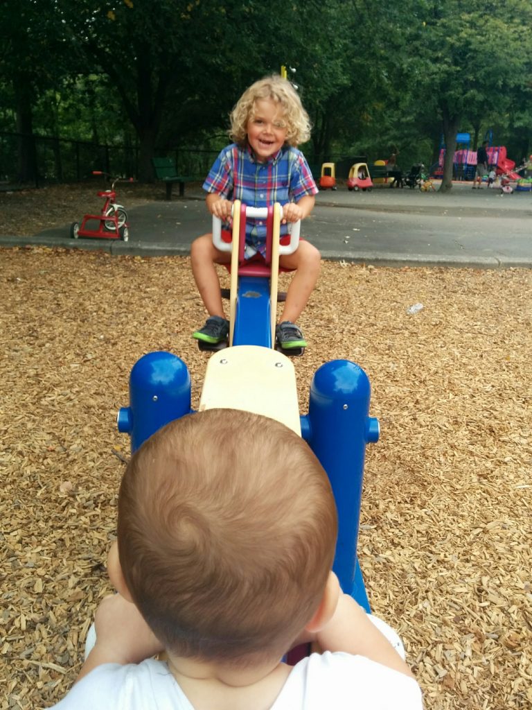 Tim took both boys out for their first shared spin in the bike trailer. Look at that hand holding!